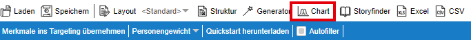 Mit dem Chart-Feature lassen sich Ergebnistabellen in wenigen Schritten grafisch darstellen. Die Grafiken können auf vielfältige Weise formatiert und an die jeweiligen Anforderungen angepasst werden. Der Aufruf des Features erfolgt über den Button Chart in der Symbolleiste.