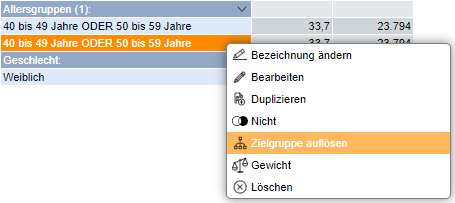Über das Menü der rechten Maustaste können verknüpfte Zielgruppen wieder aufgelöst werden.