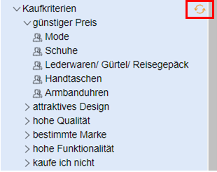 Über einen Wechselschalter wird die Darstellung eines Ordners im Codeplan getauscht. Damit können entweder Merkmale mit allen Kategorien oder eine Kategorie mit allen Merkmalen ausgewählt werden.