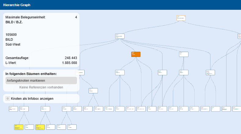 Die Planung regionaler Tageszeitungen muss nicht kompliziert sein. Mit dem Hierarchie-Graph werden alle Belegungseinheiten in einer übersichtlichen Baumstruktur dargestellt – schnell, einfach und direkt per Klick. So wird Planung zum Kinderspiel.
