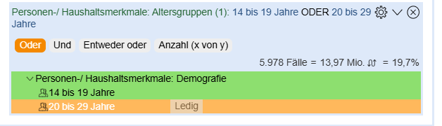 Zielgruppenmerkmale werden beim Drag&Drop nicht als Zielgruppensegment (Zielgruppenbox) verknüpft, sondern können jeder beliebigen Zielgruppenbox als Merkmal hinzugefügt werden.