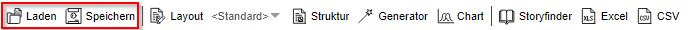 Gesamte Auswertungen werden über das Icon in der Symbolleiste gespeichert und geladen.
