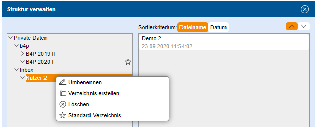 Es ist möglich, neue Ordner einzurichten und bereits gespeicherte Dateien dorthin zu kopieren oder zu verschieben.