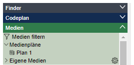 Im temporären Verzeichnis Medienpläne stehen aktuell gebildete, aber nicht abgespeicherte Streupläne zur Verfügung.