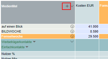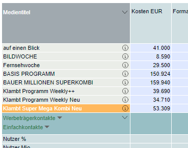 Icon im Tabellenkopf rufen Sie alle über die ausgewählten Titel gebildeten Rabattkombinationen ab. Die Kombis werden direkt in der Medienauswahl angezeigt.