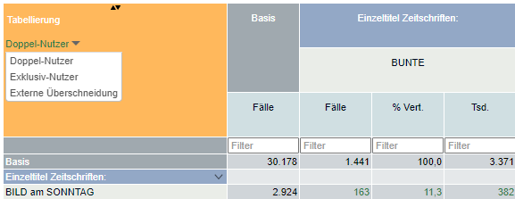 | Doppelnutzer | Nutzer des Mediums der Vorspalte UND des Mediums im Tabellenkopf |